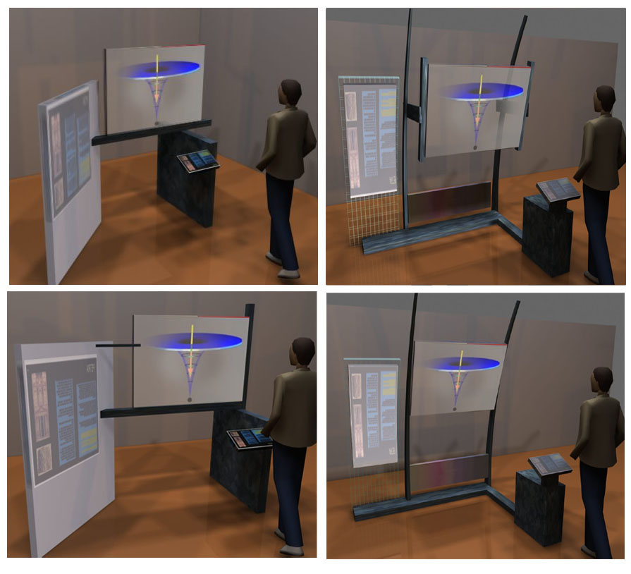 -Design of devices for exhibition. Here a display for projection of images. All 4 models were made in one morning.